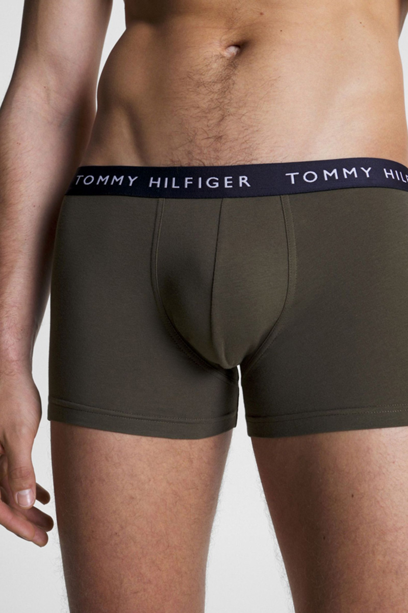 3-pack Tommy Hilfiger trunks. In deze verpakking zitten 2 tinten groen/blauw en een grijze. De shorts hebben een elastische tailleband met hierin het Tommy Hilfiger merklogo. Daarnaast zijn ze gemaakt van stretch katoen, dragen ze comfortabel en sluiten ze mooi aan op je lichaam. Deze echte klassiekers zijn gemaakt van recycled katoen.