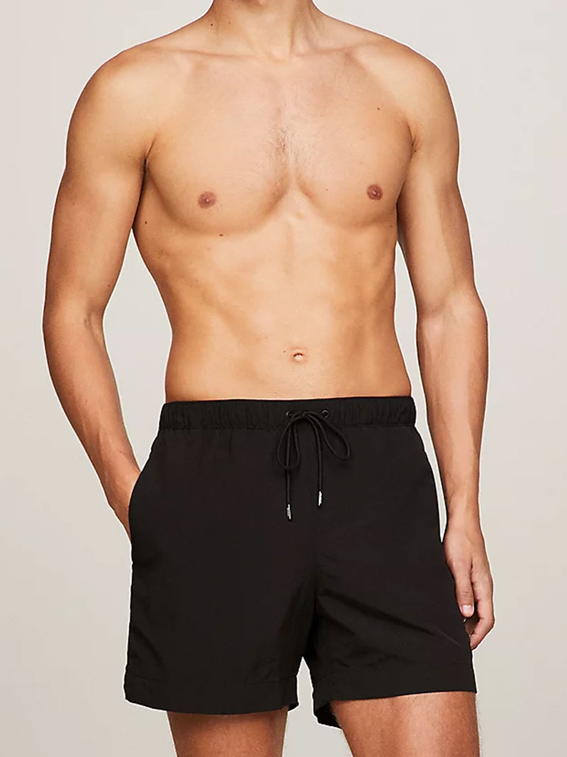 Een dagje zwembad of strand? Neem deze halflange zwemshort met een comfy elastische taille met trekkoord mee. Tommy Hilfiger zwemshort mini flag in het zwart heeft de uitstraling voor iedere man.